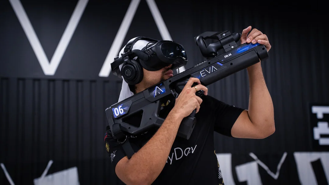 EVA repousse les limites du gaming en créant des espaces de jeu physiques équipés des technologies VR les plus avancées. Dans ces arènes de 5400 sq ft, les joueurs s’affrontent ou coopèrent sur des jeux exclusifs conçus par EVA.